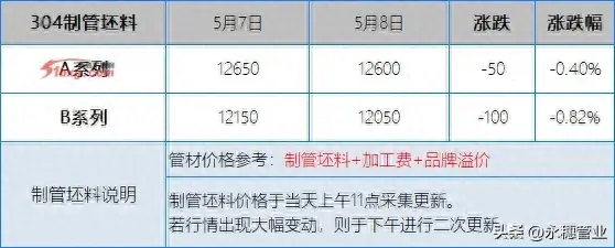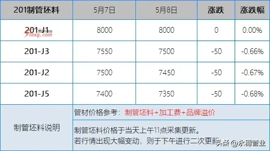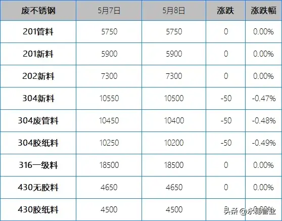 今日,不锈钢现货市场报价多有下移操作。早间,青山钢厂201盘价持平,市场贸易商销售其他产地资源价格有所下调20-50元/吨,可见广西窄带低价在含税7800元/吨。而304价格则是显得混乱,青山代理因有让利政策,故报价较昨日下调100元/吨,市场广西窄带资源高低价差达200元/吨左右,报价含税12850-13050元/吨。日内,高价持续承压。再看废料方面,市场报价304废料跌20-50元/吨,个别高位跌100元/吨,整体买卖活跃度不高。不锈钢水管|双卡压式管件|304不锈钢水管品牌|佛山市永穗不锈钢有限公司